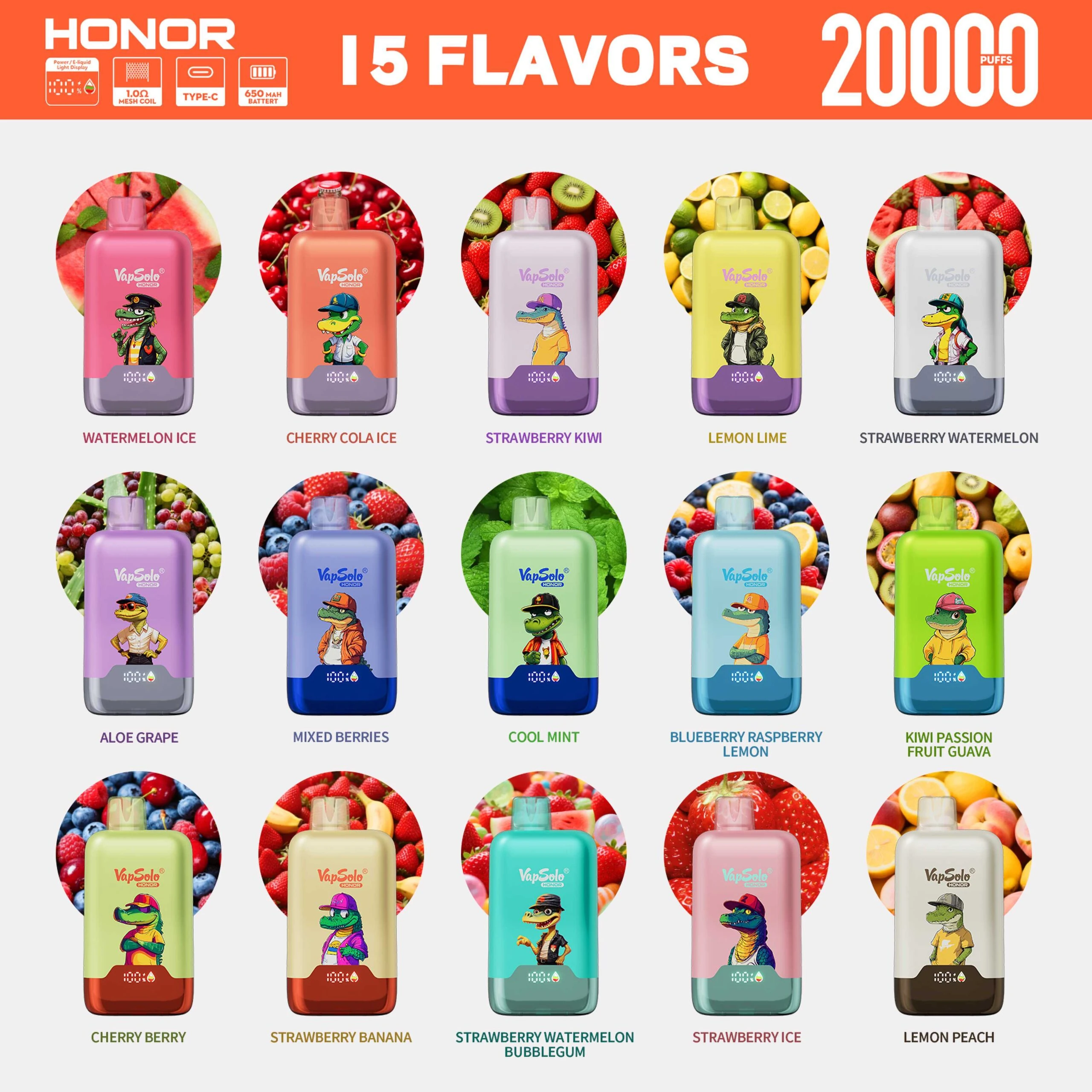 🌬️ Vapsolo Honor 20000: Signature Flavor Menu